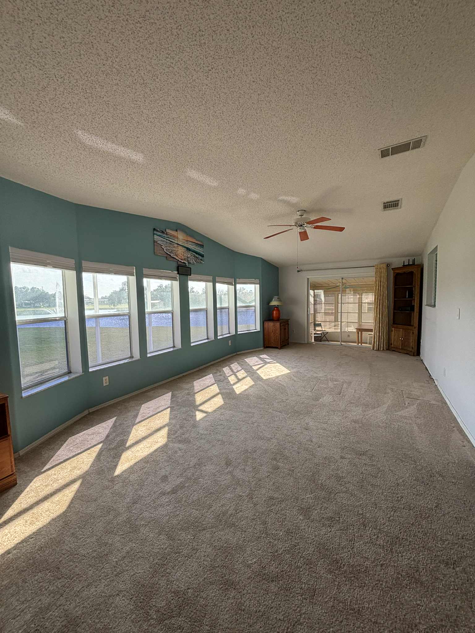 This home offers multiple living areas, including a cozy living room and an extra-large, window-rich Florida room, bookended by two screened-in lanais. Whether you’re sipping your morning coffee, unwinding in the evening or entertaining guests, you’ll enjoy serene views of the golf course, peaceful pond and beautiful fountain that lights up at night.