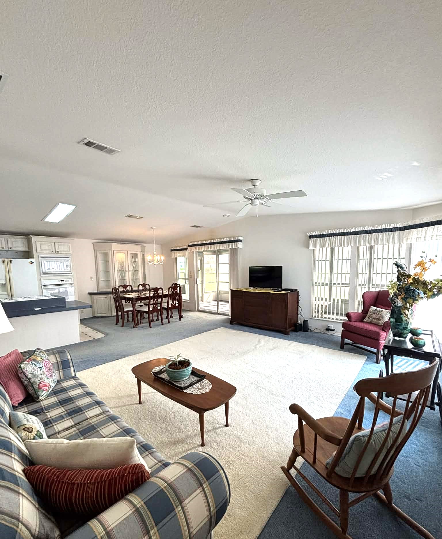 2 Bedroom | 2 Bath | 1920 sq ft | $108,000 Four Lakes Golf Club Lot 343 Live Where Every Day Feels Like a Getaway – Golf Course Gem with Fountain Views Welcome home to 1300 Las Brisas Lane, Lot 343, where peaceful golf course living meets comfort, space and incredible value. Situated on the 18th hole, this 2 bedroom + den, 2 bath home offers 1,920 sq ft of open, light-filled living space with picturesque views of a stunning fountain that illuminates the night-creating a truly magical backdrop right from your own home. Unwind in the expansive windowed lanai, where you can take in sweeping golf course views year-round-your personal front-row seat to Florida’s natural beauty. Imagine ending each day with glowing fountain views and gentle evening breezes-this is more than a home, it’s a lifestyle. Inside, you’ll love the bright open-concept layout, perfect for both relaxing and entertaining. The den with French doors provides a flexible space for a home office, reading room or guest overflow. The spacious primary suite is designed for comfort, featuring a beautiful bay window with a cozy seating area, along with an en suite bath complete with dual sinks, a vanity area, and a walk-in shower. More features to love: Like new Golf cart included Oversized golf cart garage with extra storage space One full year of FREE golf Convenient ramp entry at the main entrance Large laundry room with overhead cabinets This home is an exceptional opportunity to enjoy a relaxed, resort-style lifestyle with space to spread out and views you’ll never tire of.