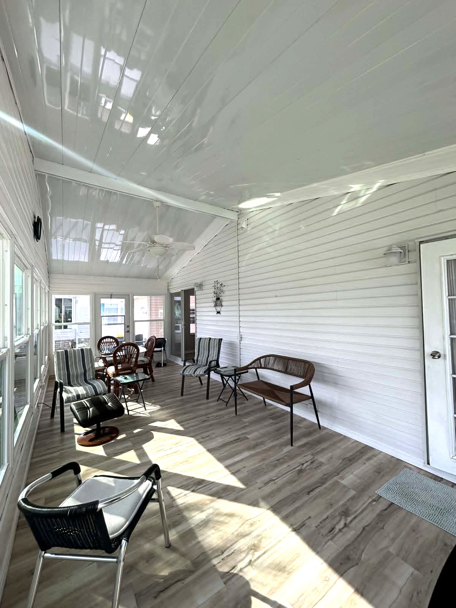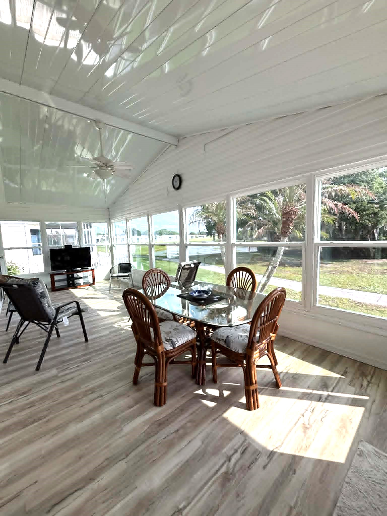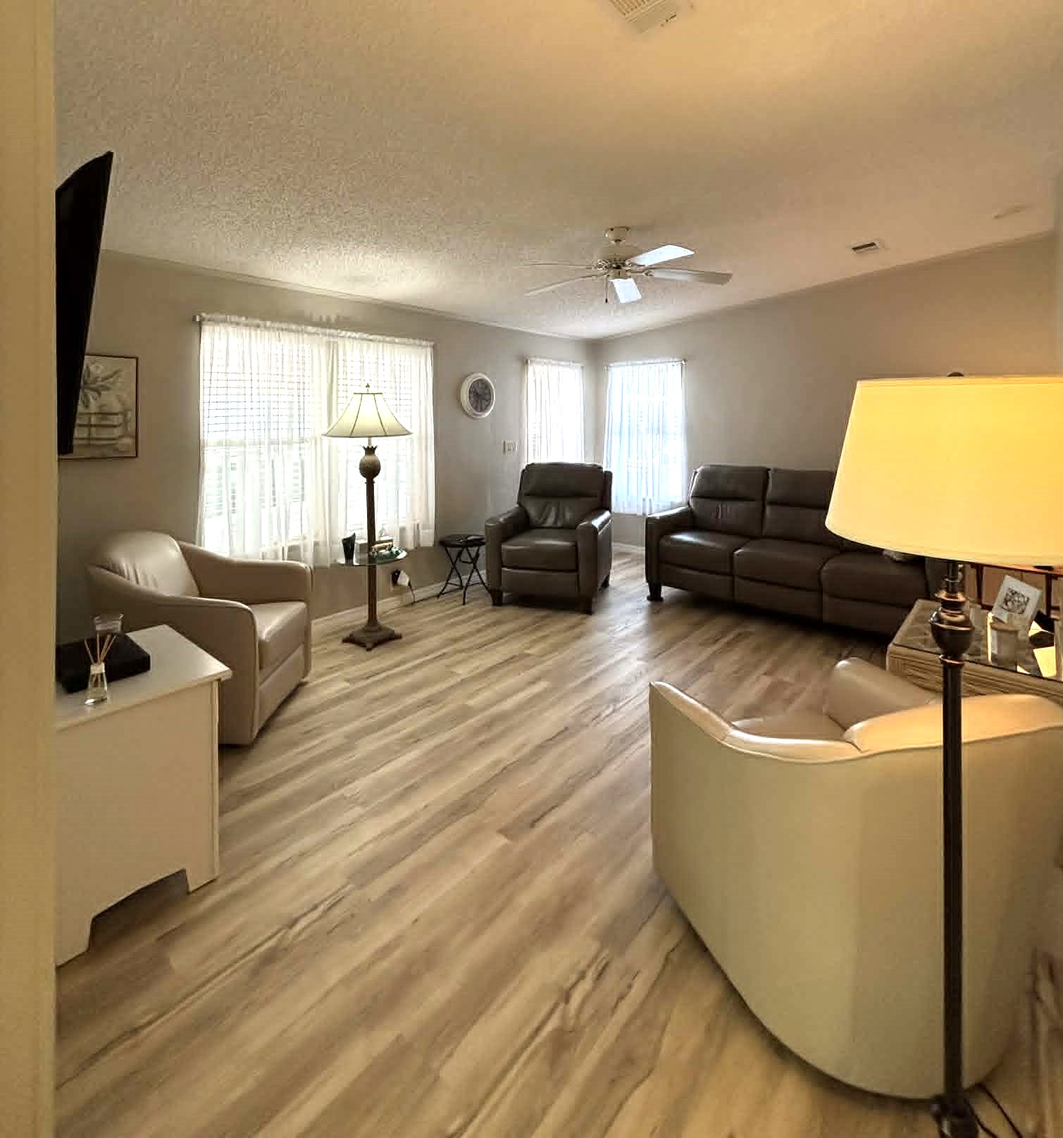 Thoughtfully designed with modern laminate flooring and upgraded countertops, this home blends comfort with elegance. The spacious primary suite features a private en suite bath, walk-in shower, seated vanity, and direct access to the Florida room—bringing the outdoors in.