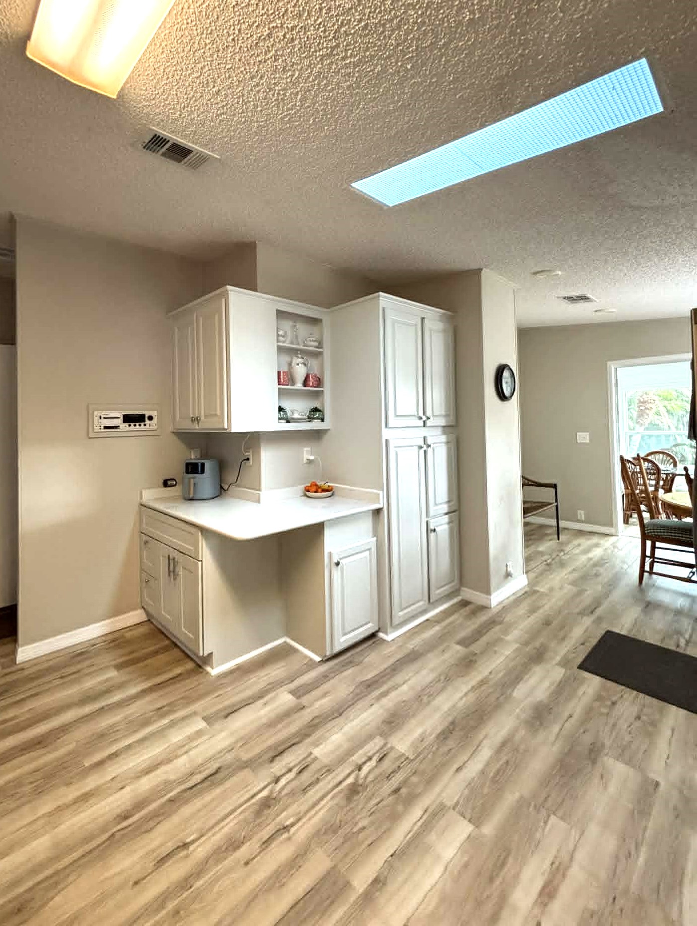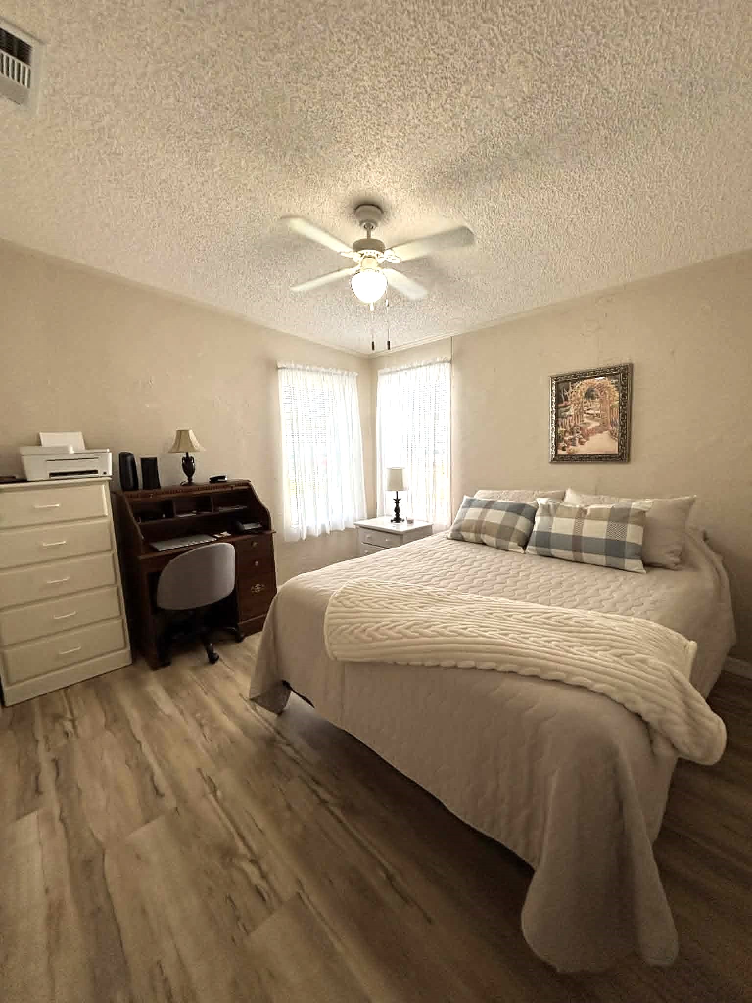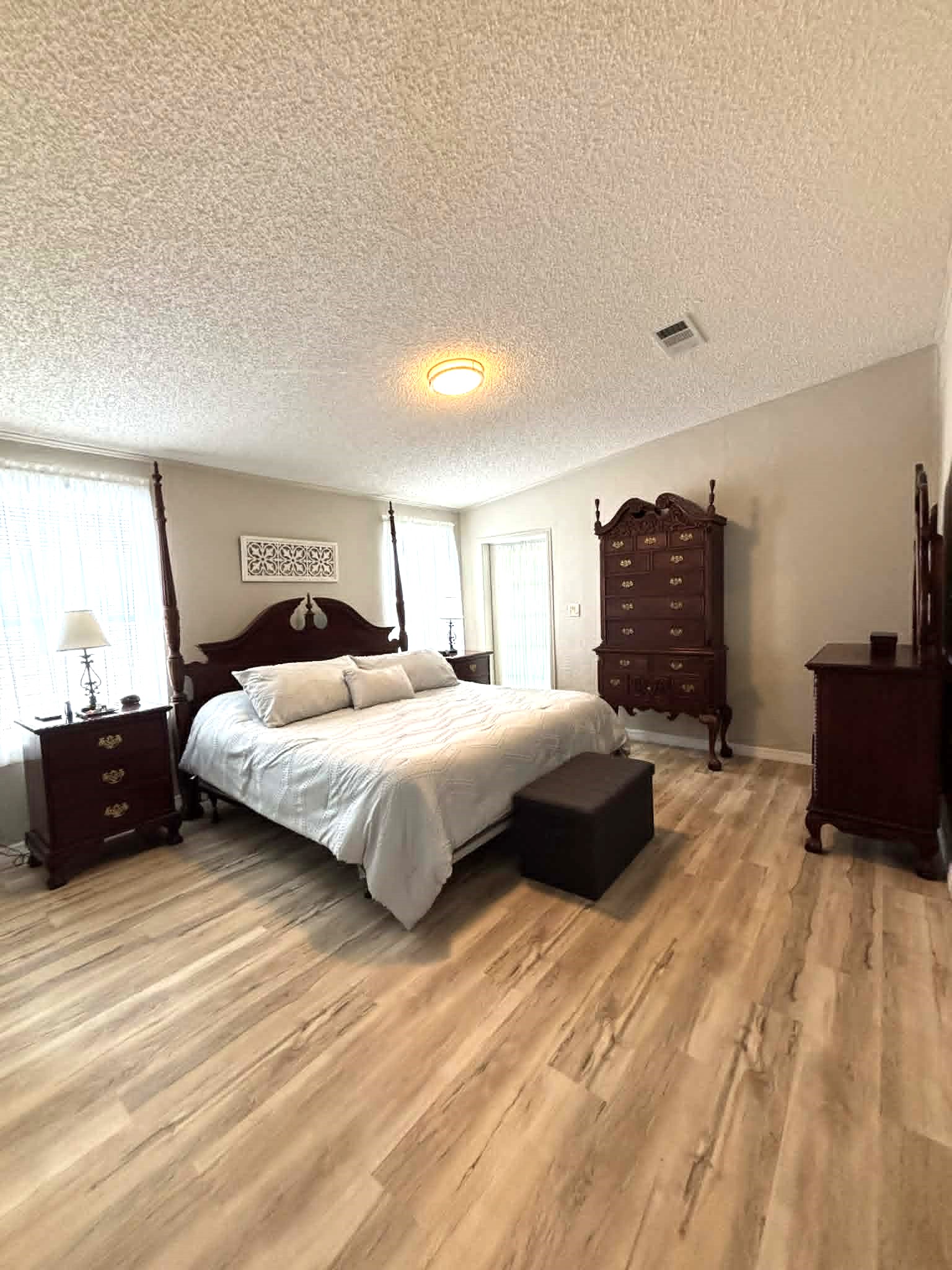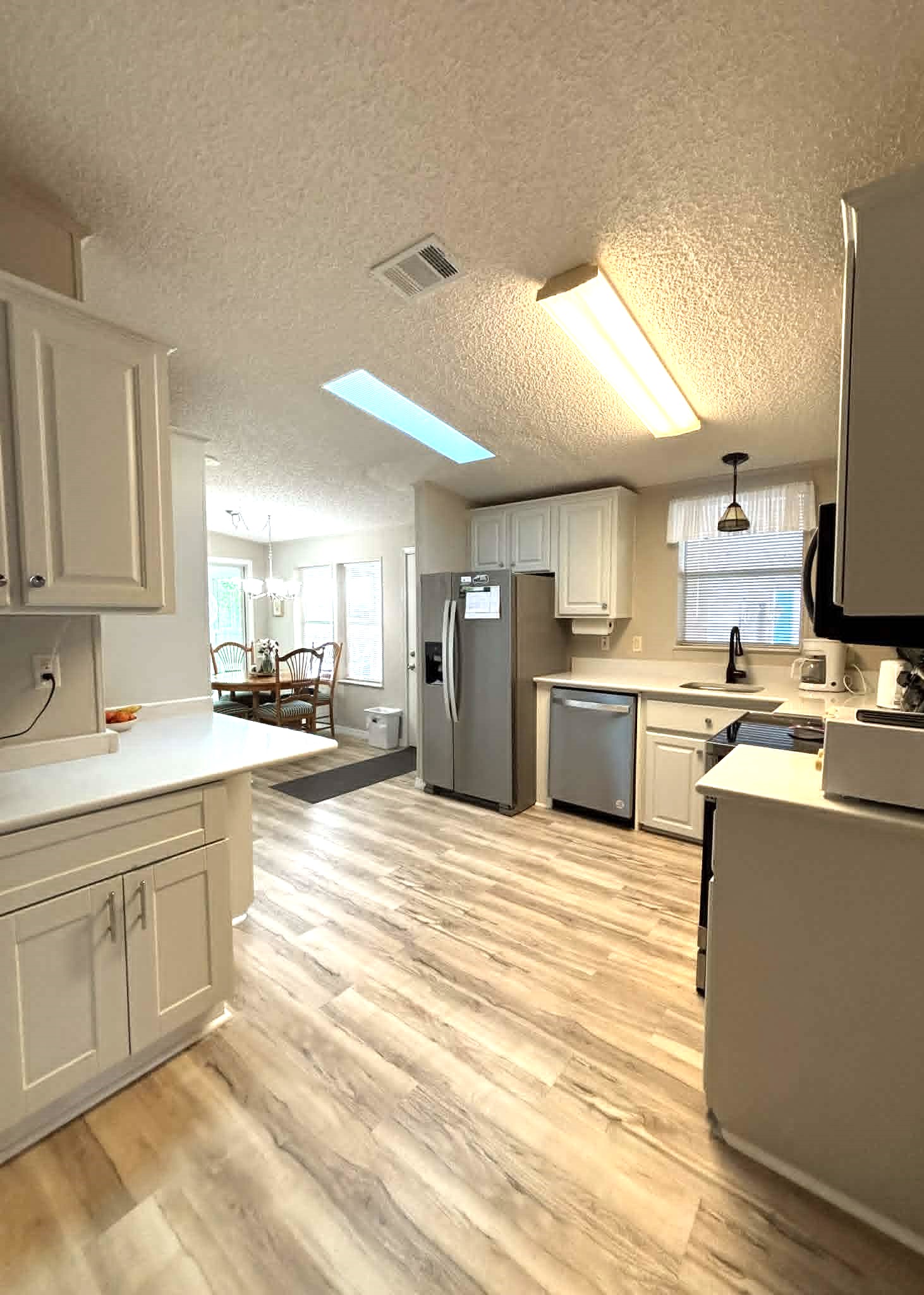 Thoughtfully designed with modern laminate flooring and upgraded countertops, this home blends comfort with elegance. The spacious primary suite features a private en suite bath, walk-in shower, seated vanity, and direct access to the Florida room—bringing the outdoors in.