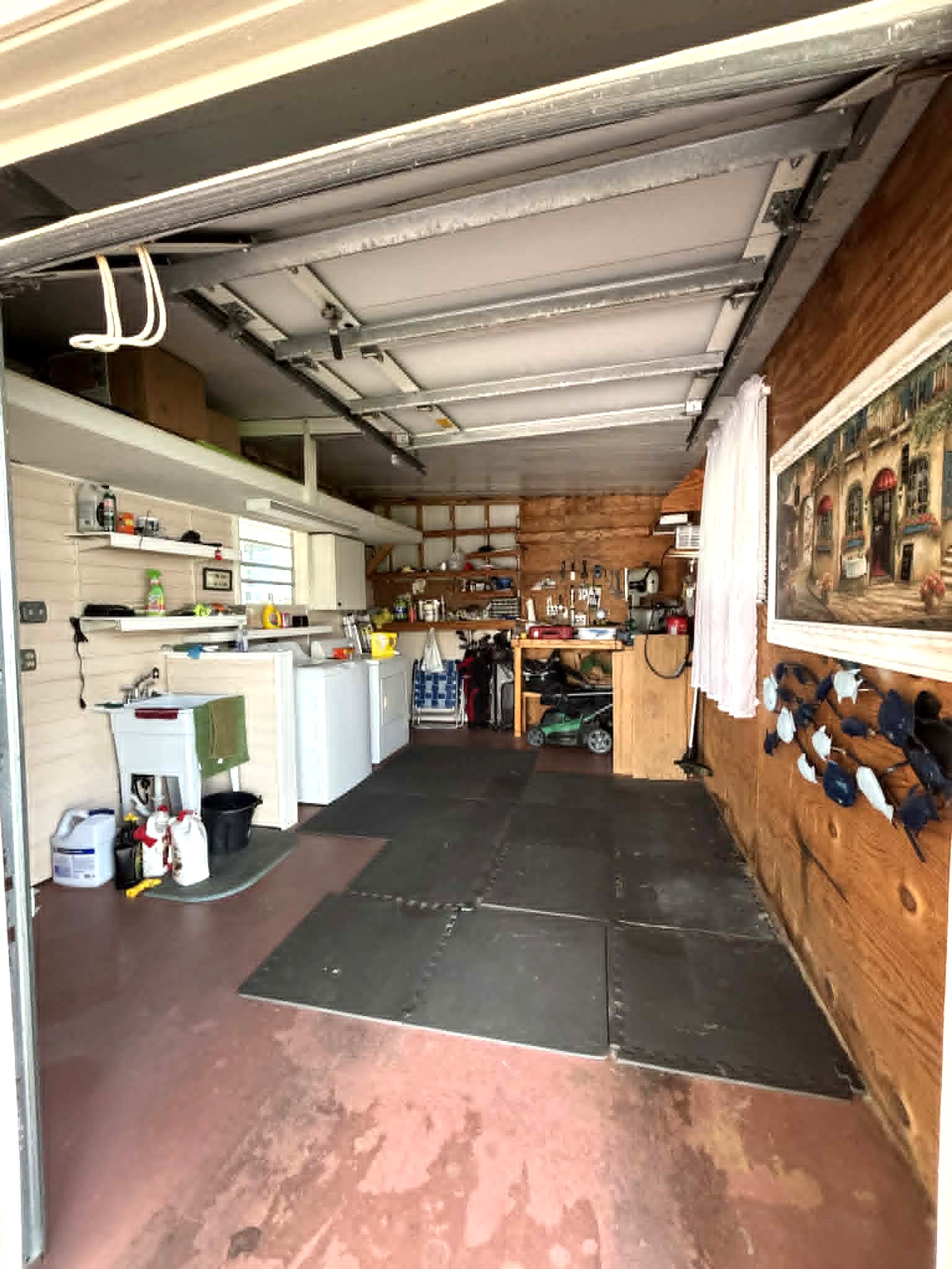 The oversized golf cart garage is a rare bonus, complete with laundry, sink, built-in workbench, and ample overhead storage. Step outside to your side patio—ideal for grilling and enjoying peaceful evenings with a view.