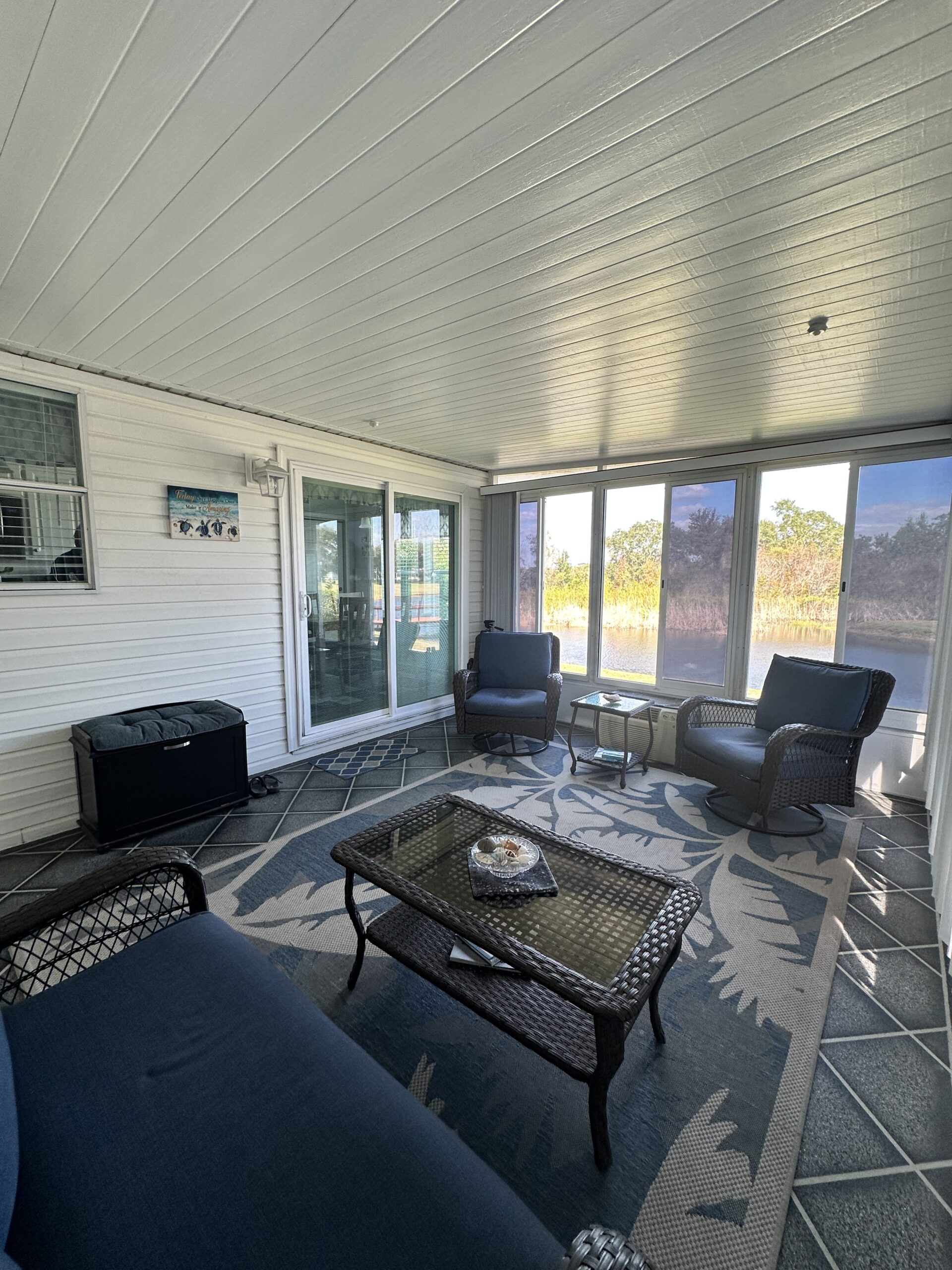 Relax and soak in the sun-filled, windowed lanai, offering panoramic views of the pond, wildlife, and golf course—the perfect spot for morning coffee, evening sunsets or simply enjoying the serene surroundings.