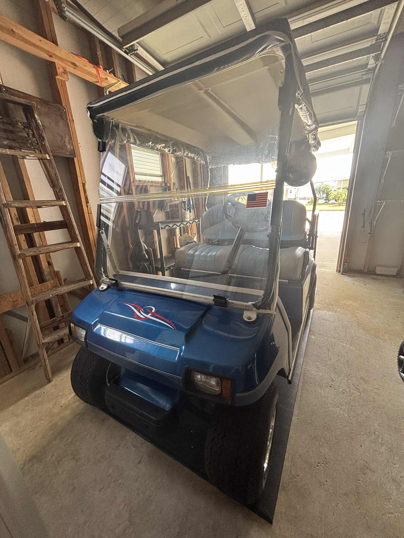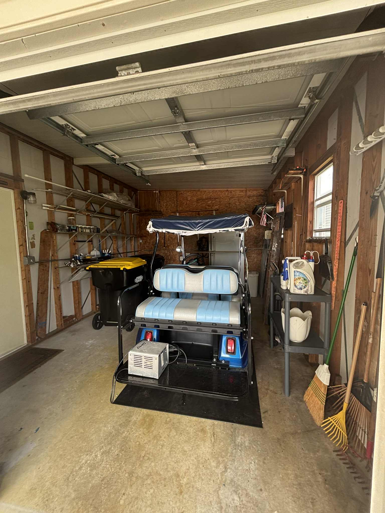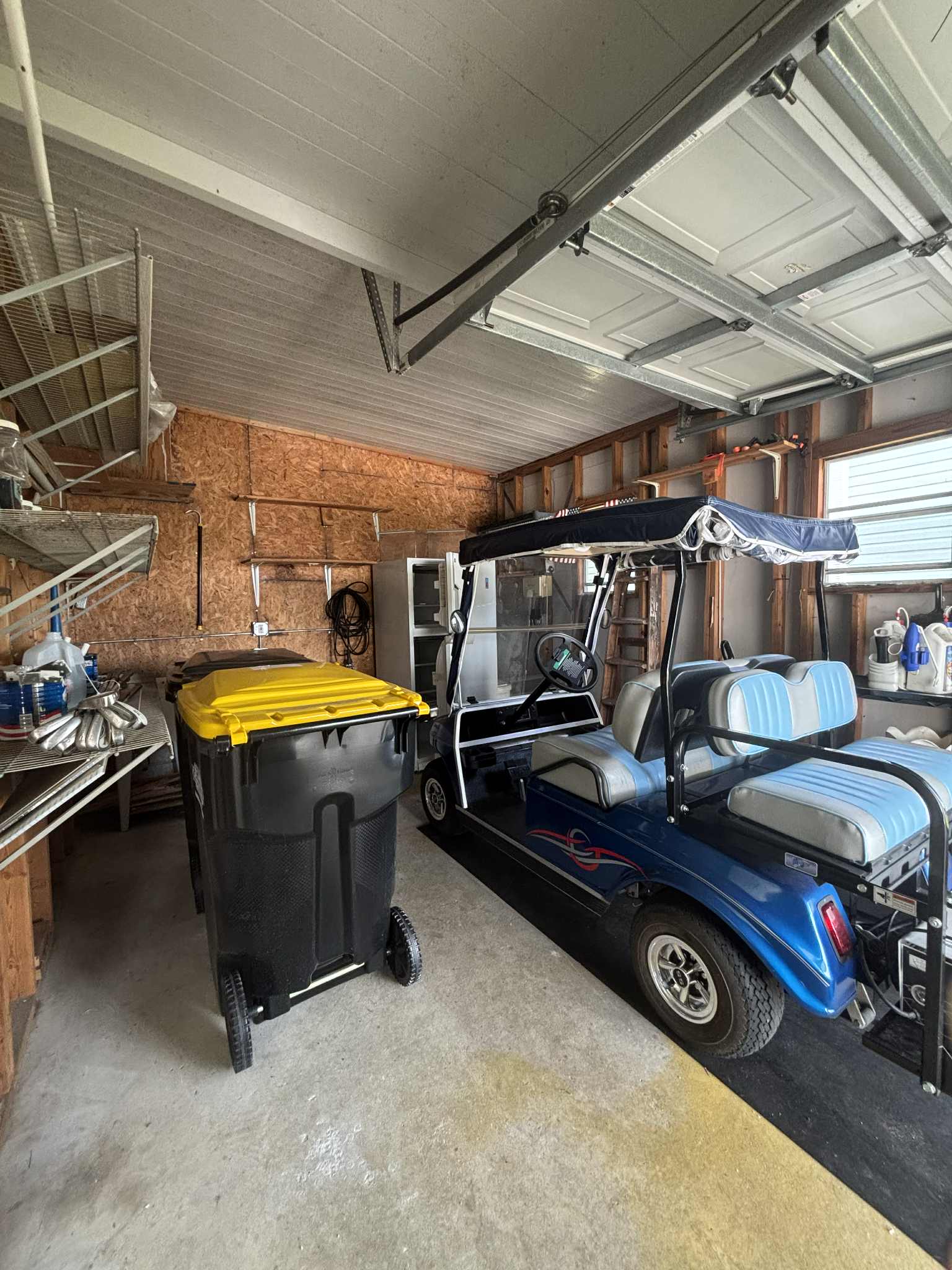• Golf cart garage with shelving