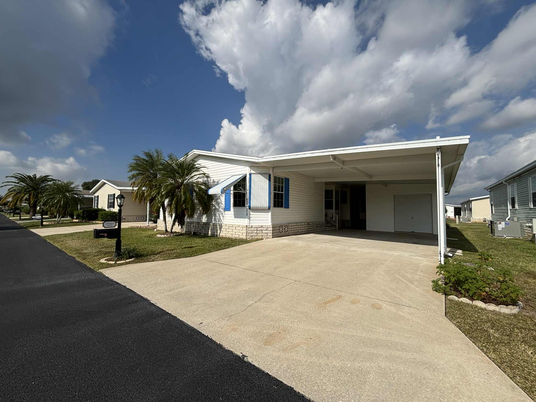 A dedicated golf cart garage with shelving provides convenient storage for your included golf cart, plus one FREE year of Golf.
