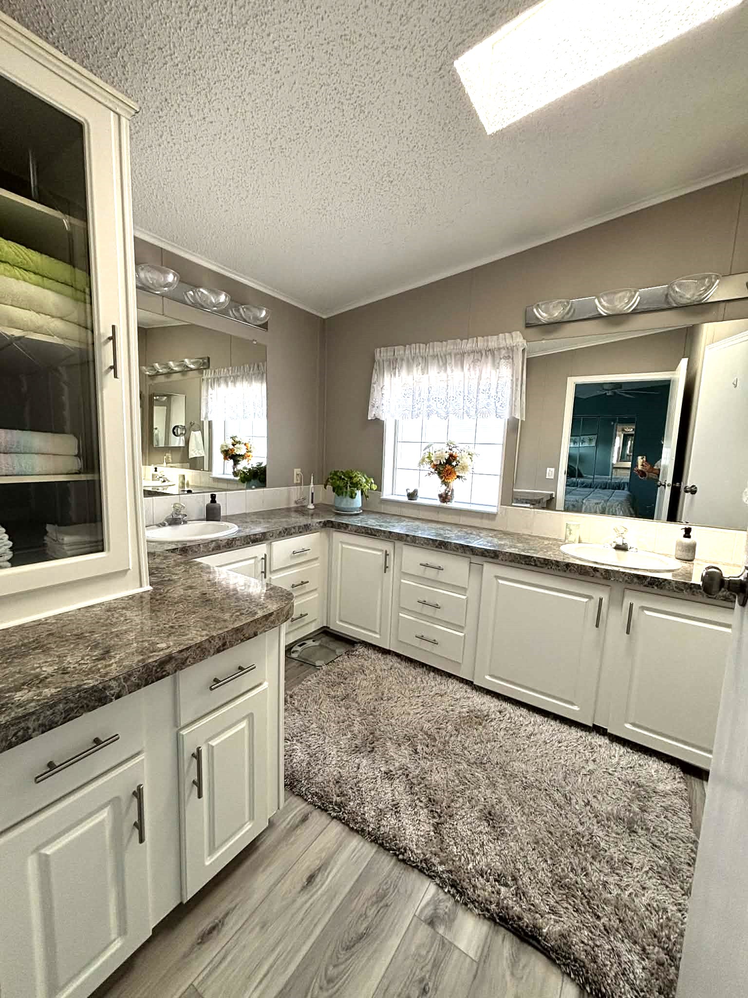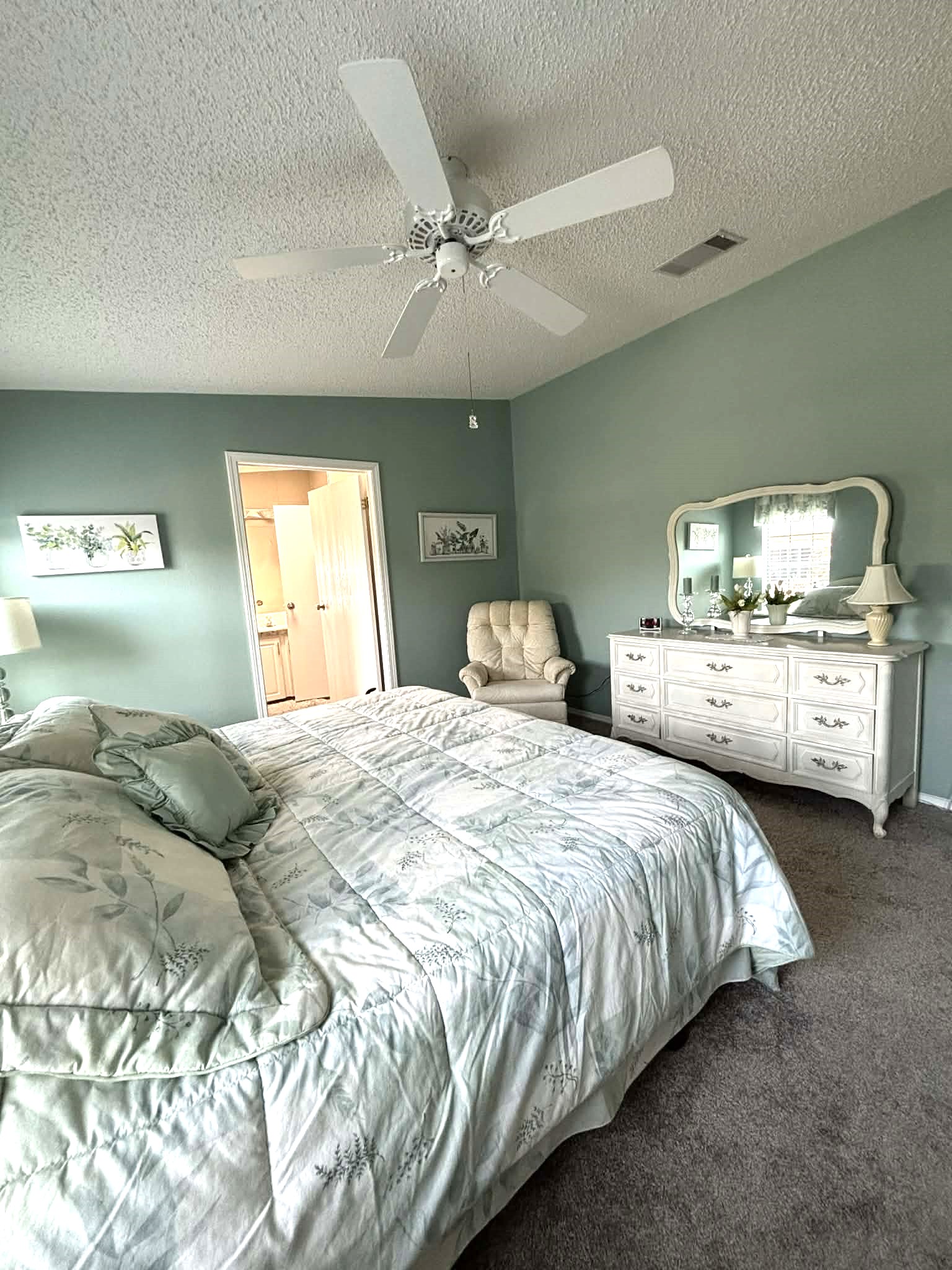 Retreat to the spacious primary suite, designed with relaxation in mind. The en suite bath offers extensive cabinetry and lovely countertop space, creating a spa-like experience.